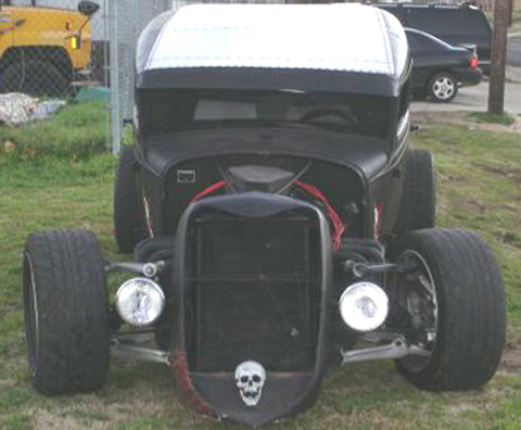 Here’s a blast from the past. A few days ago I stumbled across a few more pictures of the original Morbid Rod and thought I’d add them and bump this post back to the top to show everyone the car that started Morbid Rodz. This car was built over the course of many months during 2005 – 2006 in a small shop here in Paris, Texas. It started life as a 1930 – 31 Ford Model A sedan but was highly modified with a chop and channel job. The frame started life as a 36 pickup piece that was boxed and clipped with Corvette donor suspension front and rear and the finished sedan body was mated to it. The same Corvette donated it’s drive train to this beast and after hours and hours of work the car was finished and terrorizing the streets. The original Morbid Rod featured several unique touches that would later on be used on almost every rat rod that rolled out of the shop. Features such as chopped roof profiles, channeling the body over the frame, aluminum roof skins and braces, and wrenches modified for things like accelerator pedals and handles. This car also had a fully custom grill shell, a miniature coffin air breather, flame thrower exhaust, custom skull shaped tail lights, and chainsaw chain accents around the roof line to complete the horror theme. The car was a blast to ride in but eventually it was sold on Ebay to fund the next project and the shop known as Morbid Rodz was born!