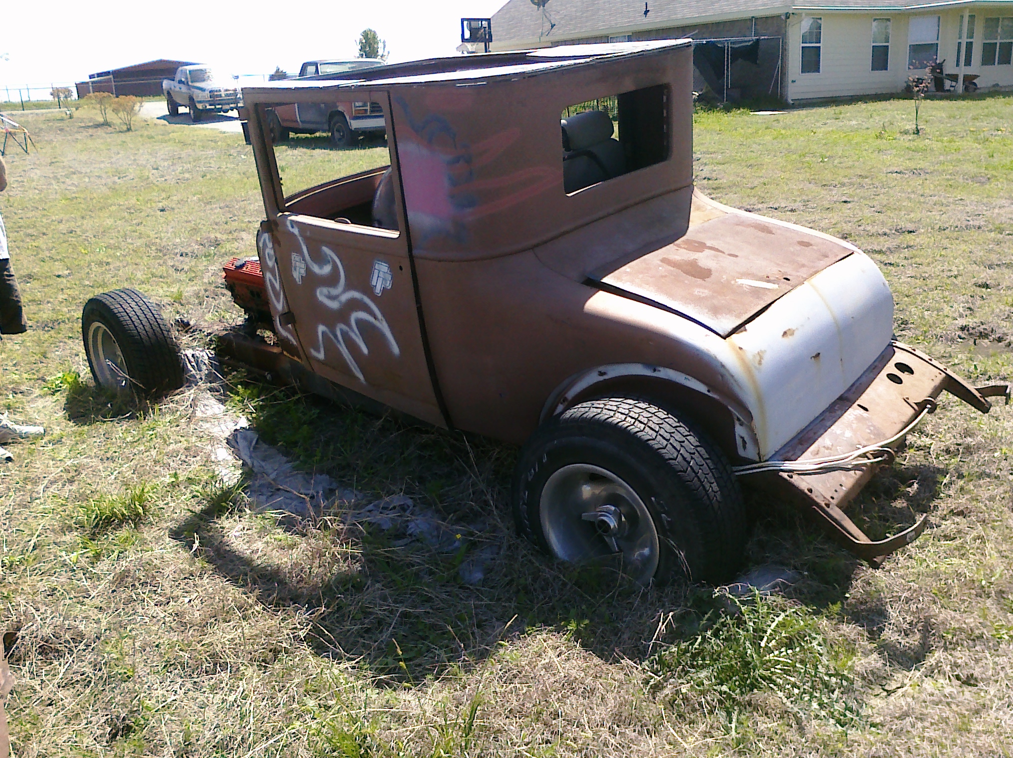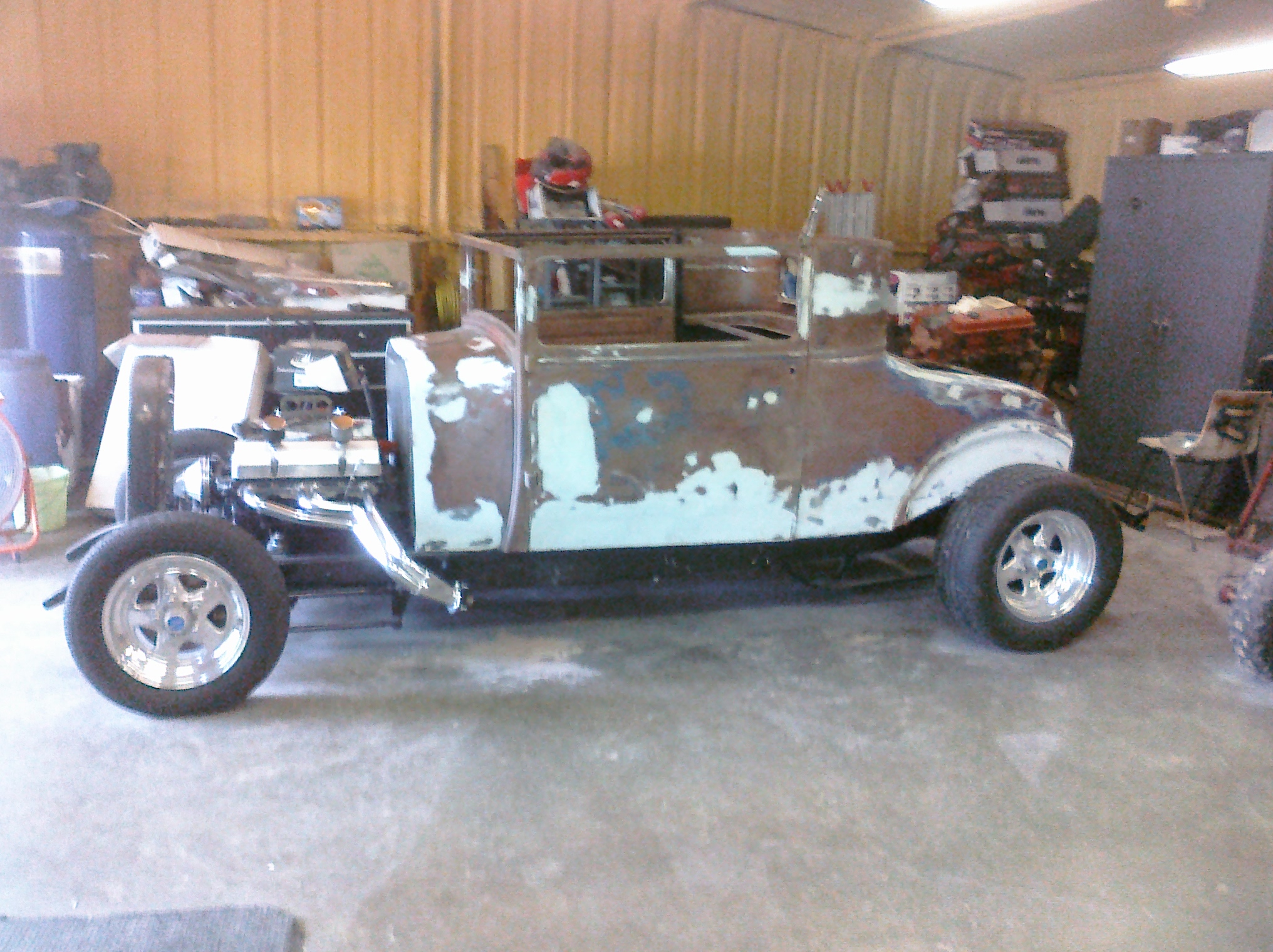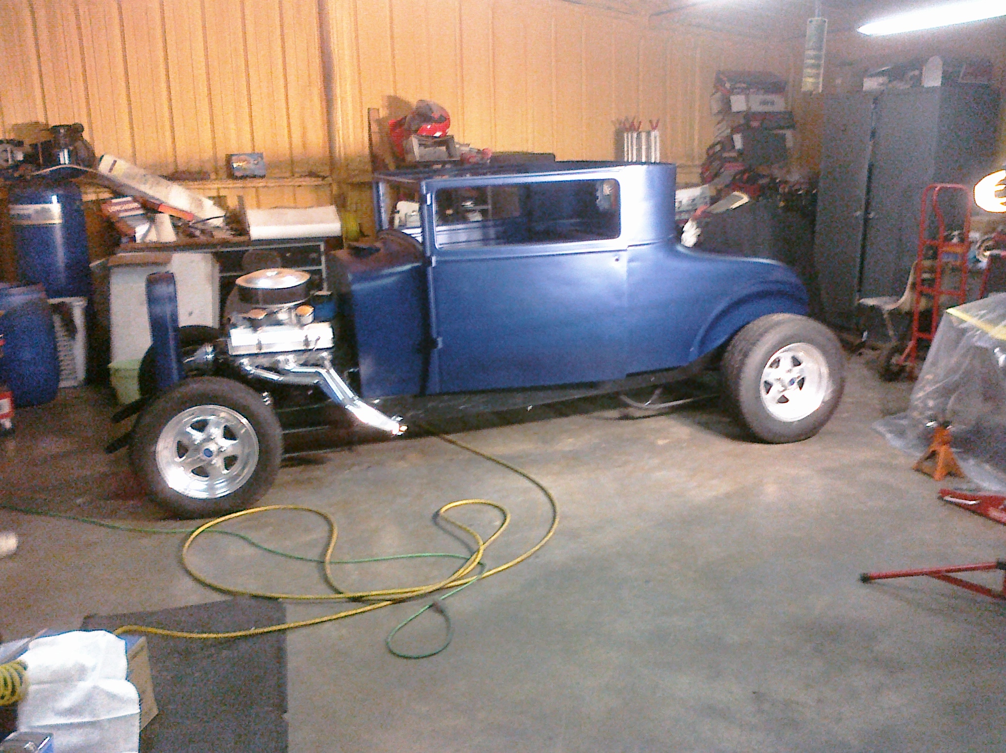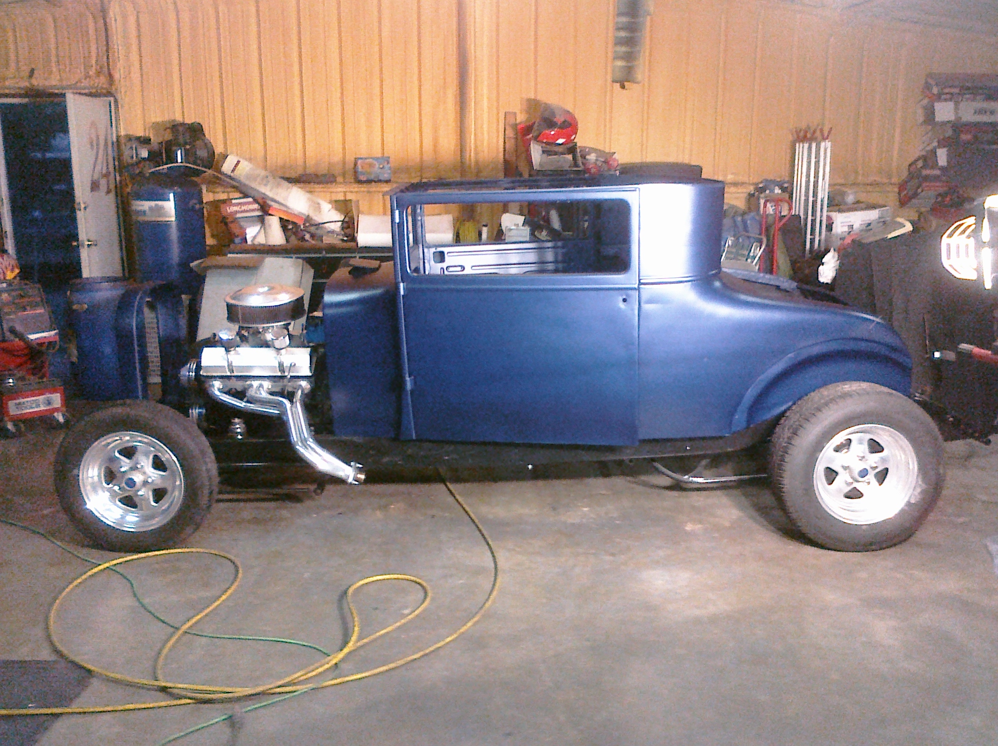 Here’s a peak at a couple more projects. One is a Model A 5 window coupe that’s been chopped and channeled and has a Jaguar IRS in the back. The other is a Model A roadster that will be kept semi-traditional and will be done highboy style. Then we have the new shop truck/parts hauler, which is a 69 Chevy shortbed that has airbag suspension all the way around and rides on a sweet set of 20 inch wheels/tires. It’s powered by a fairly mild small block backed by an automatic and is a good daily driver. I’m sure it’ll stick around for a bit longer and then will be offered for sale online. And lastly we have a few more pictures of Jesse Freelen’s Dodge Brothers coupe that we chopped the top on some time back. It’s almost finished and was at the cruise night on the square in downtown Paris this past Friday night.