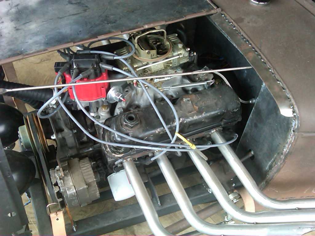 Ford Model A 5 Window Coupe built by Morbid Rodz powered by a small block Chevy drivetrain and featuring vintage wire wheels.