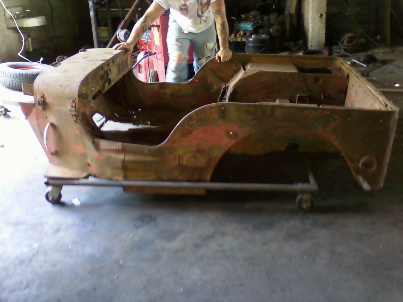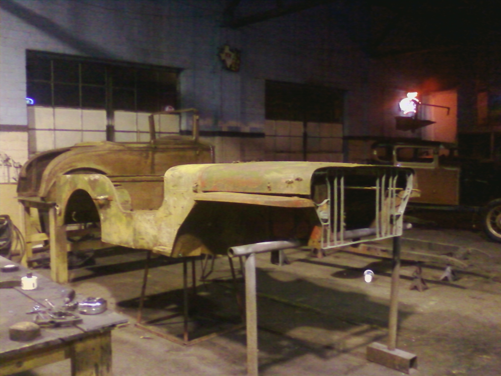 Here’s a peak at a couple more projects. One is a Model A 5 window coupe that’s been chopped and channeled and has a Jaguar IRS in the back. The other is a Model A roadster that will be kept semi-traditional and will be done highboy style.