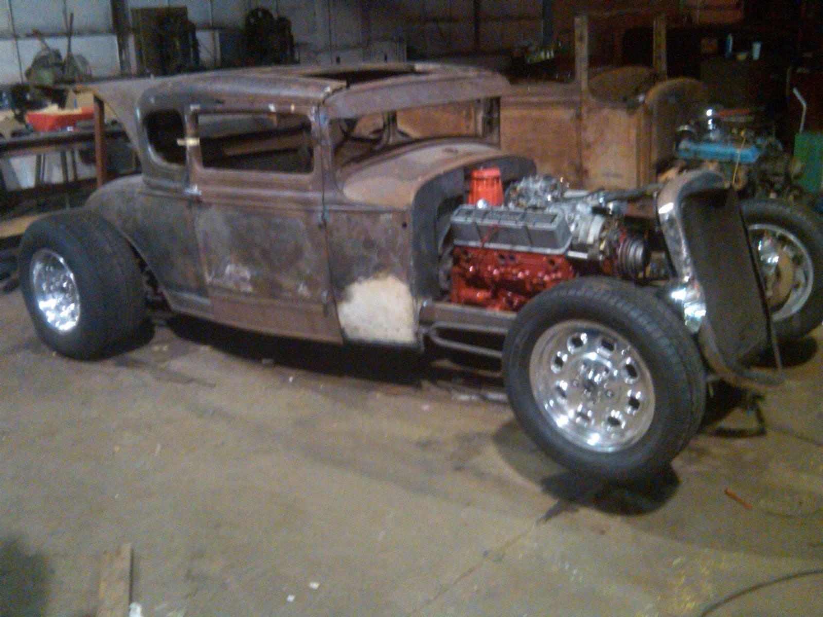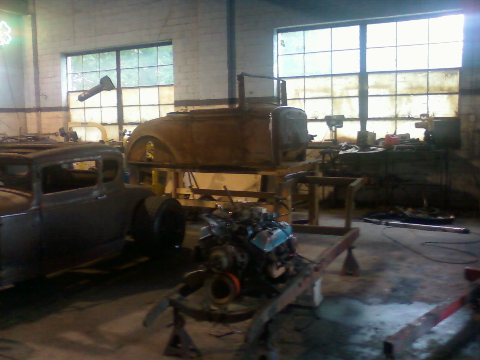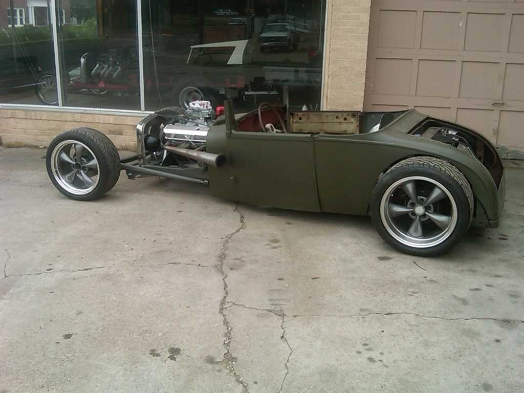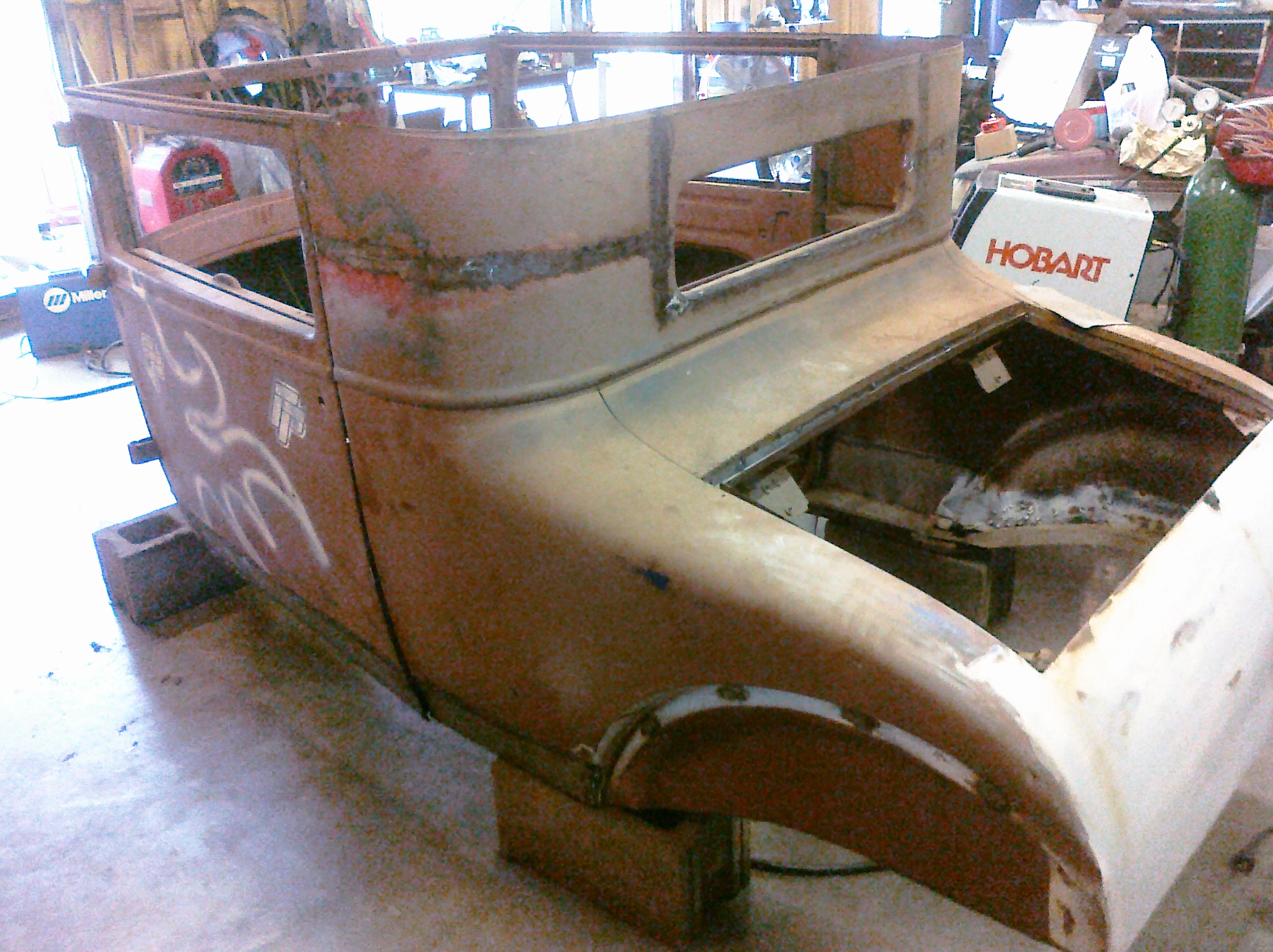 Here’s a peak at a couple more projects. One is a Model A 5 window coupe that’s been chopped and channeled and has a Jaguar IRS in the back. The other is a Model A roadster that will be kept semi-traditional and will be done highboy style. Then we have the new shop truck/parts hauler, which is a 69 Chevy shortbed that has airbag suspension all the way around and rides on a sweet set of 20 inch wheels/tires. It’s powered by a fairly mild small block backed by an automatic and is a good daily driver. I’m sure it’ll stick around for a bit longer and then will be offered for sale online. And lastly we have a few more pictures of Jesse Freelen’s Dodge Brothers coupe that we chopped the top on some time back. It’s almost finished and was at the cruise night on the square in downtown Paris this past Friday night.