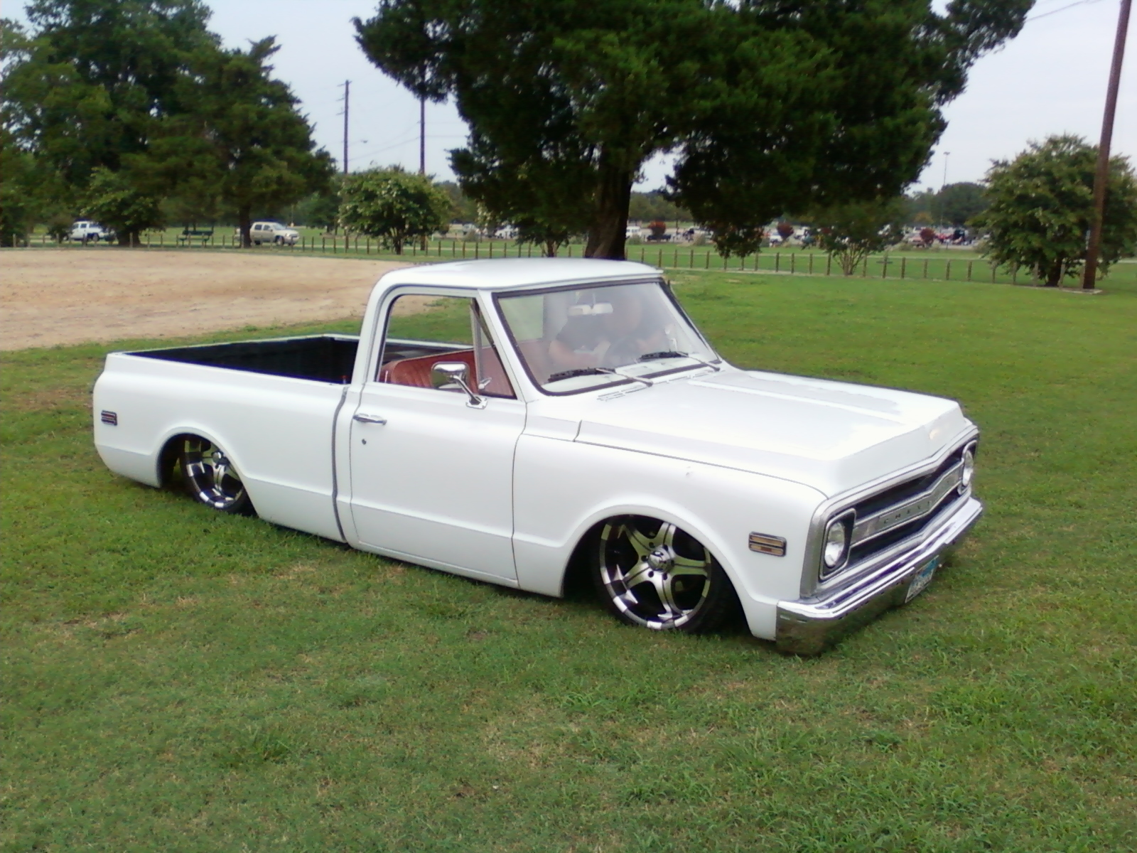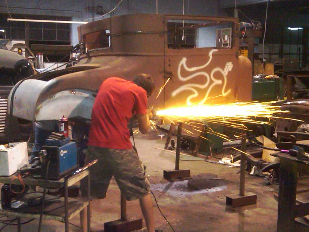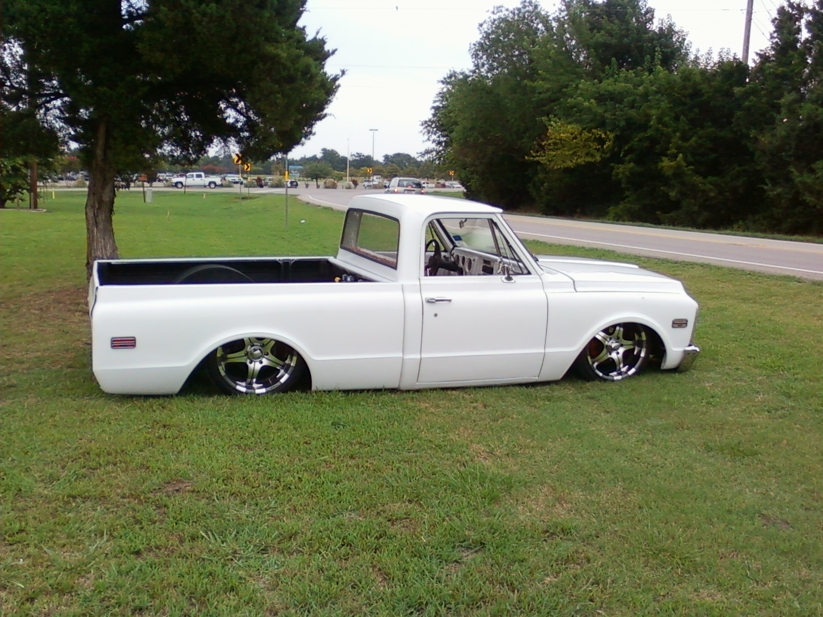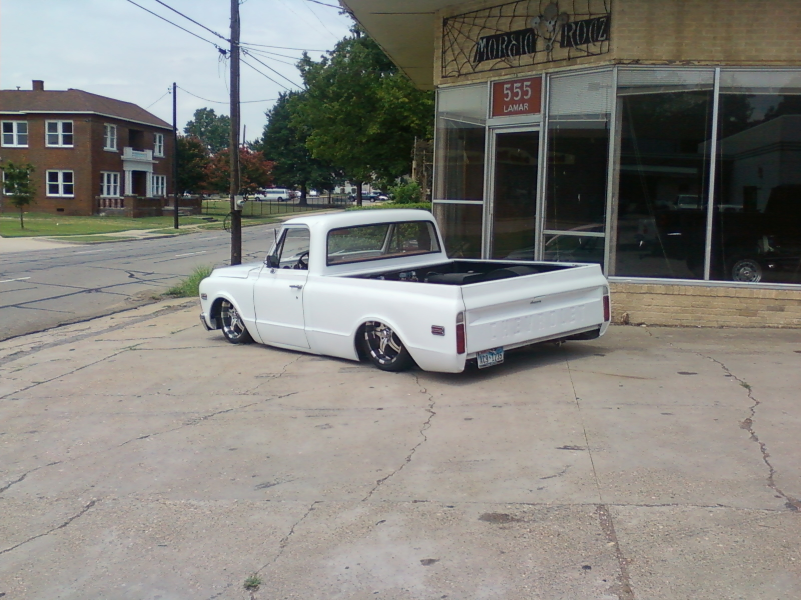 Here’s a peak at a couple more projects. One is a Model A 5 window coupe that’s been chopped and channeled and has a Jaguar IRS in the back. The other is a Model A roadster that will be kept semi-traditional and will be done highboy style. Then we have the new shop truck/parts hauler, which is a 69 Chevy shortbed that has airbag suspension all the way around and rides on a sweet set of 20 inch wheels/tires. It’s powered by a fairly mild small block backed by an automatic and is a good daily driver. I’m sure it’ll stick around for a bit longer and then will be offered for sale online. And lastly we have a few more pictures of Jesse Freelen’s Dodge Brothers coupe that we chopped the top on some time back. It’s almost finished and was at the cruise night on the square in downtown Paris this past Friday night.