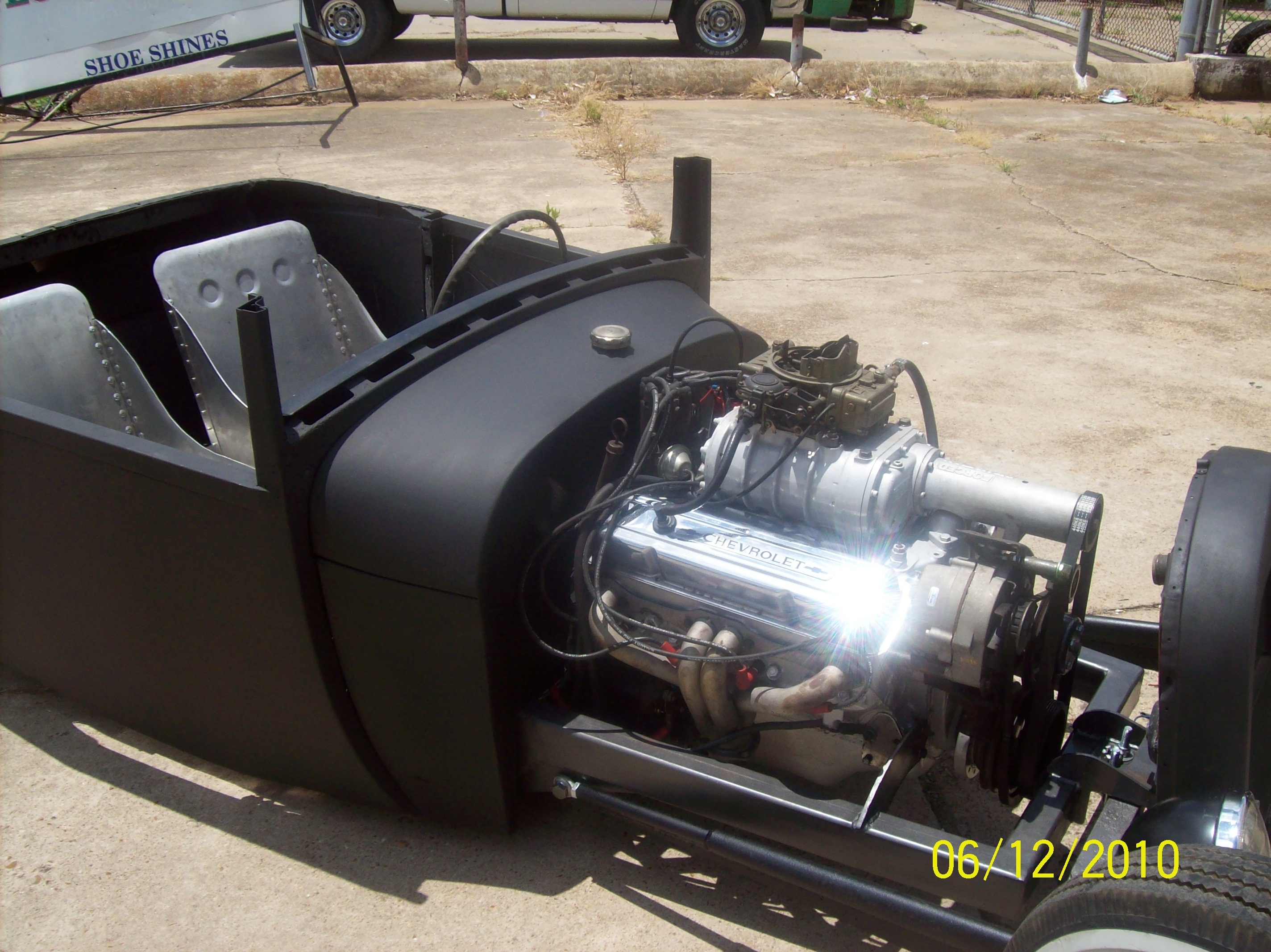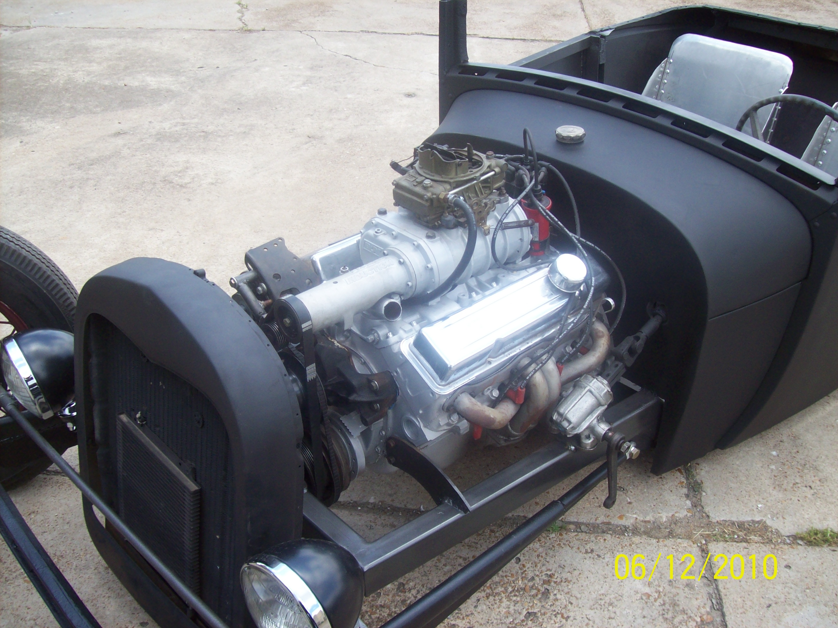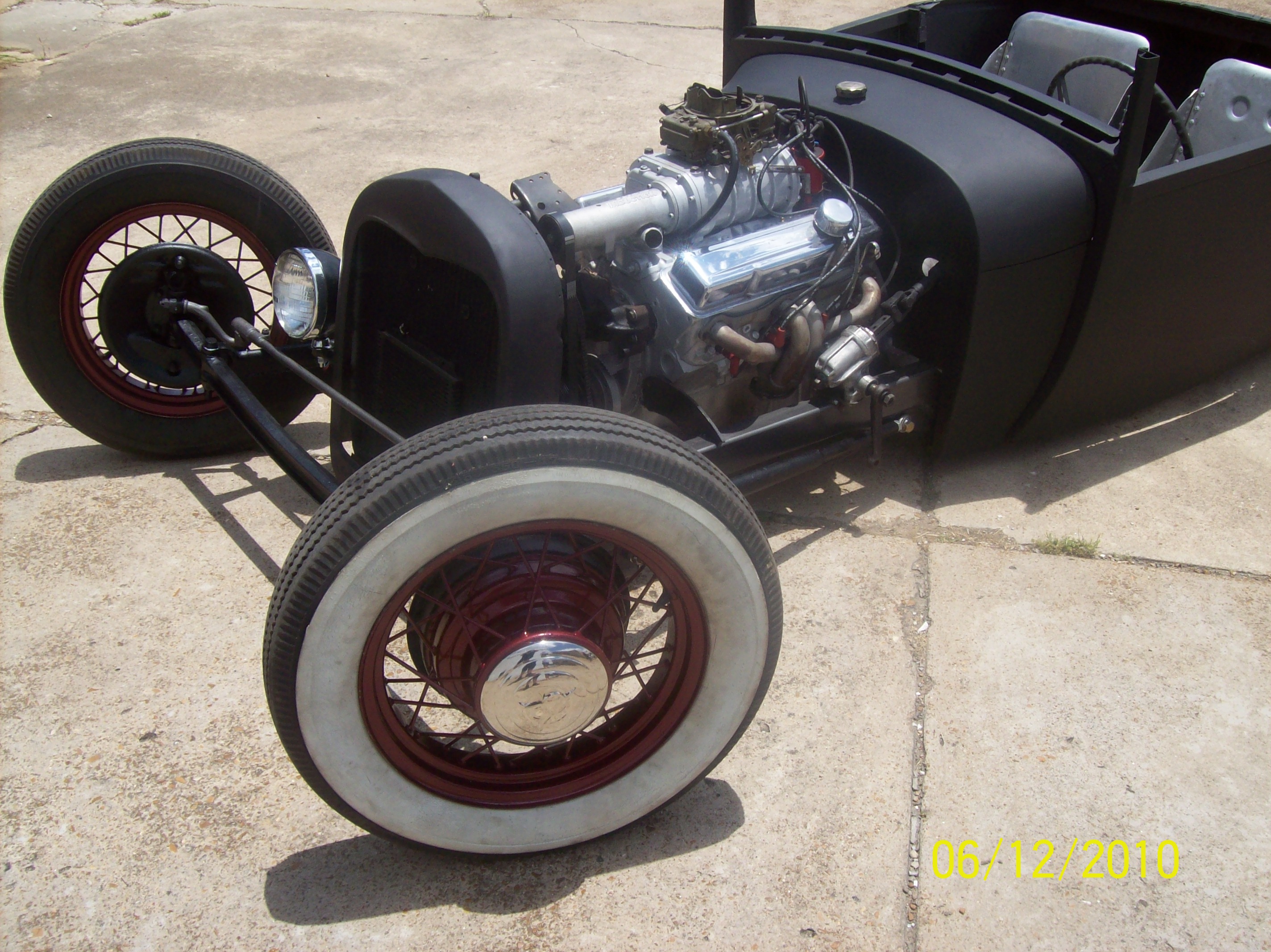 Here’s a few pictures of a recently finished Model A roadster. It’s powered by a 327 small block topped by a B&M supercharger. She rides on a set of wire wheels with white wall tires which give the car a unique look! The car was recently sold on Ebay and should be going off to a new home soon!
