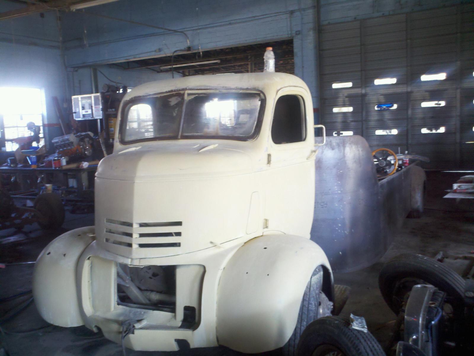 The 6 duece roadster and GMC COE car hauler near completion, plus a couple more project cars in the works.