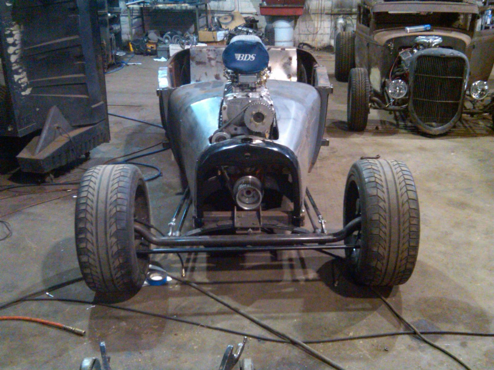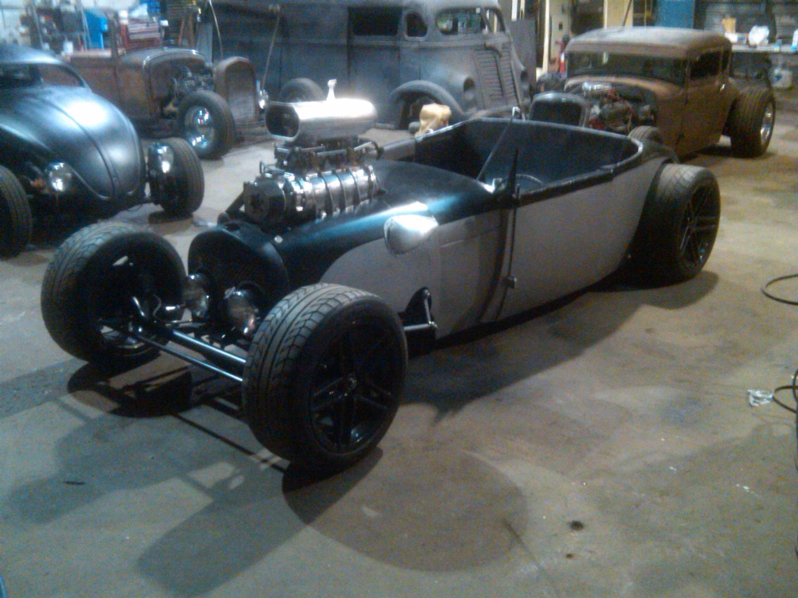 Here’s some progress pictures of the Morbid Rodz blown roadster as it nears completion. It’s powered by a stout small block Chevy topped with a supercharger and sitting on Corvette wheels.