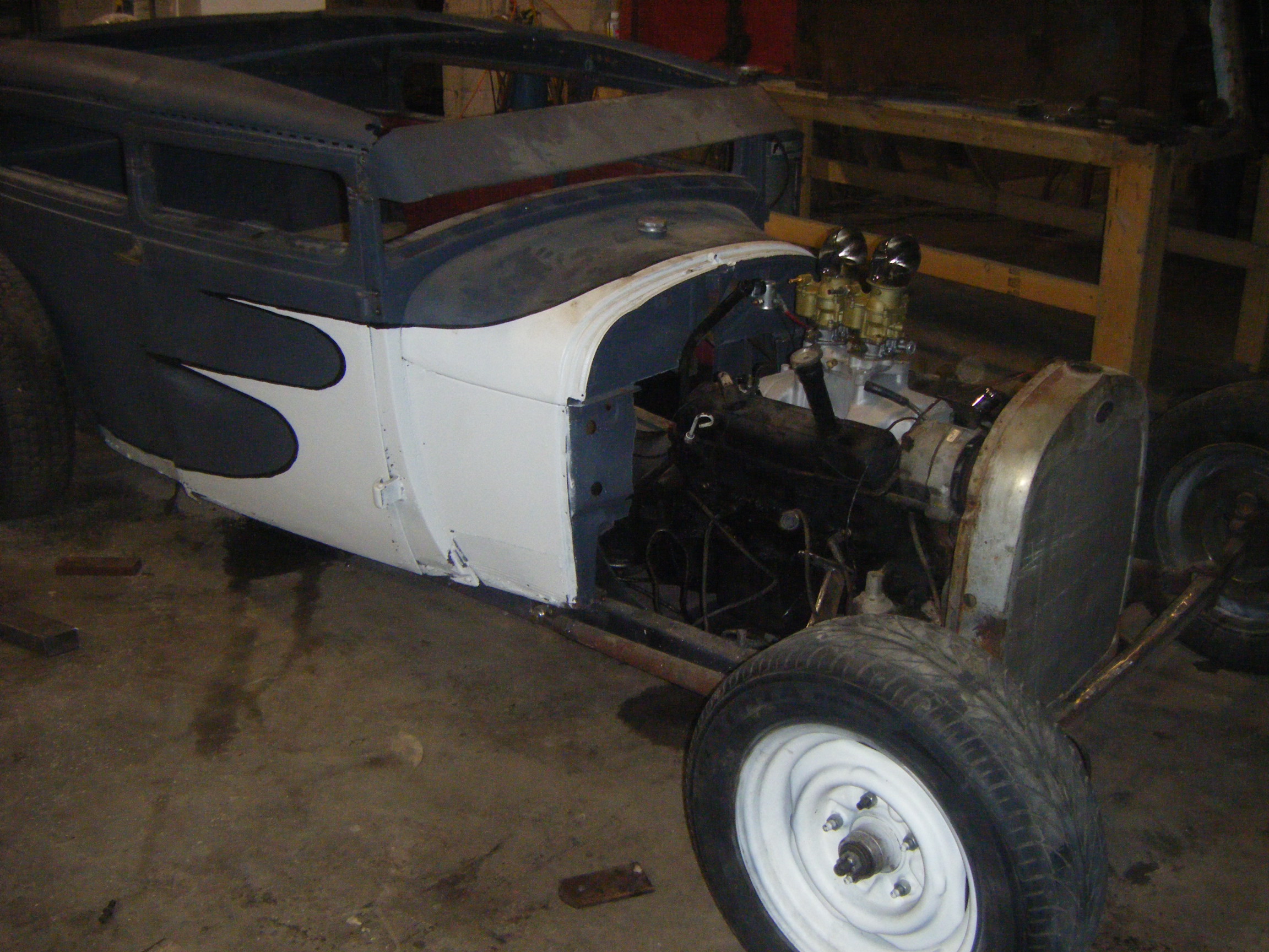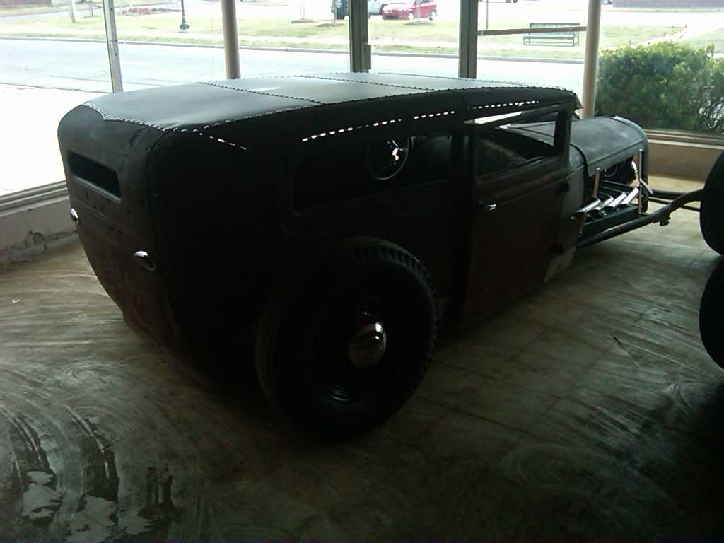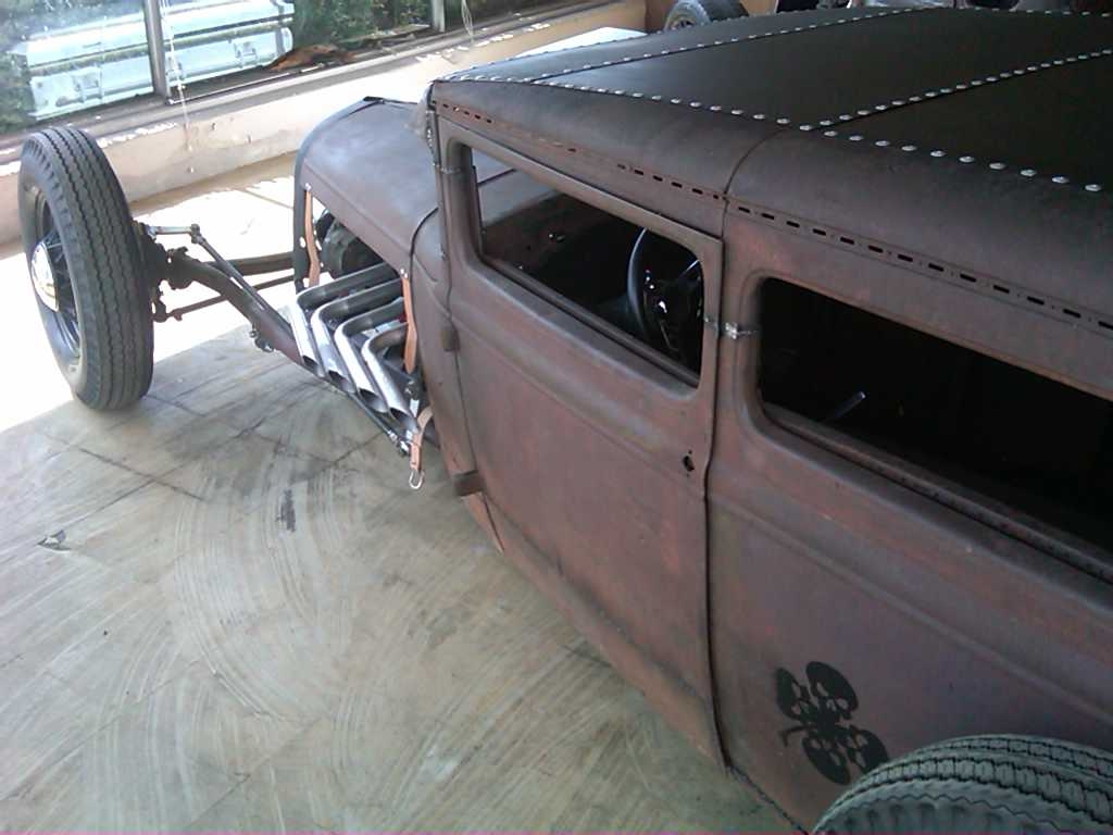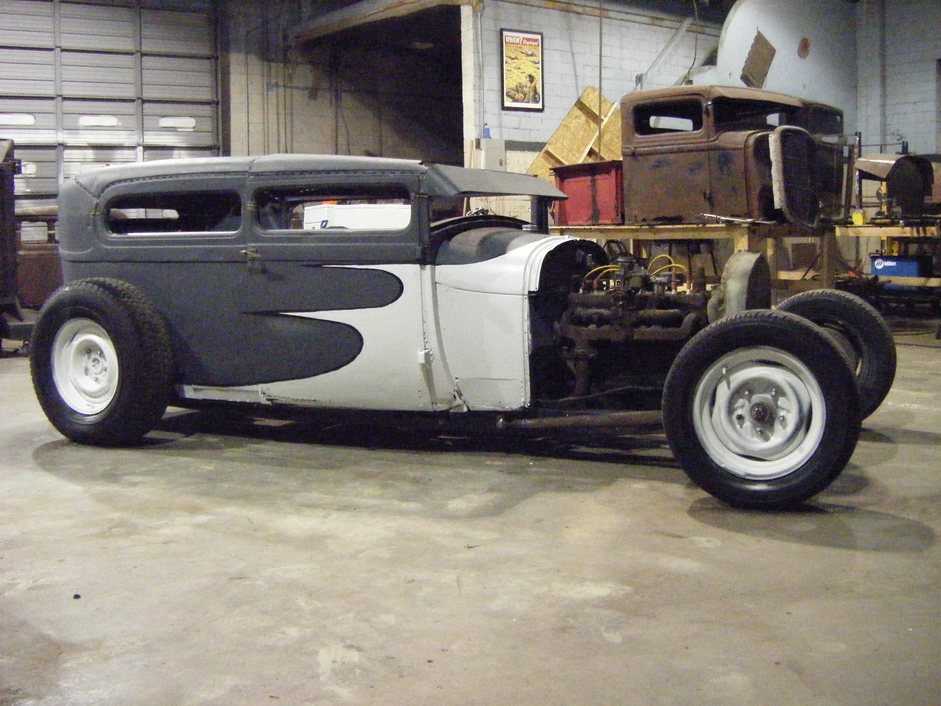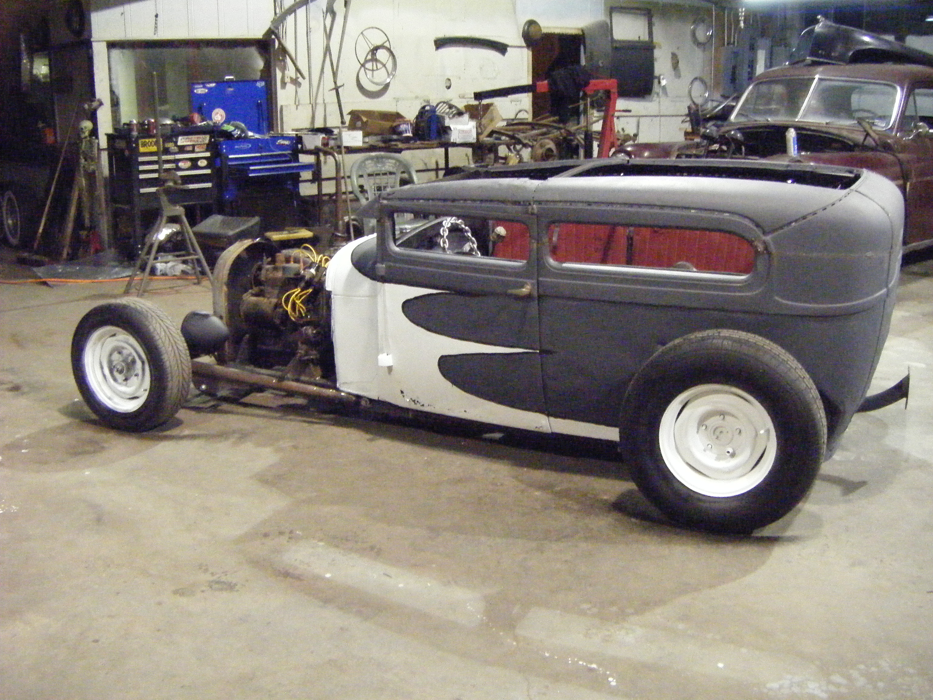 Ford Model A sedan built by Morbid Rodz that featured white scallops on a flat black finish. This car was shipped overseas and currently resides in Poland.