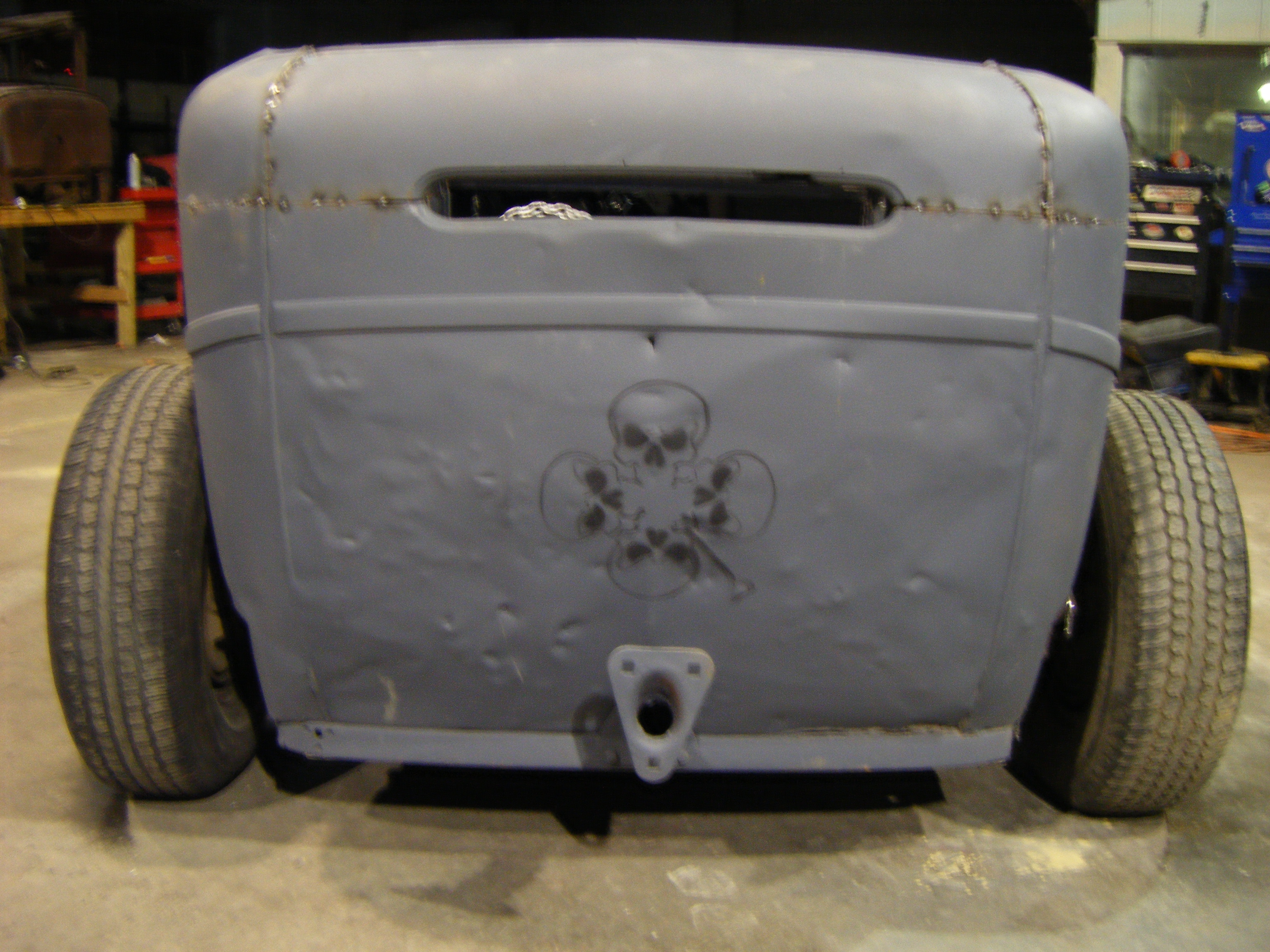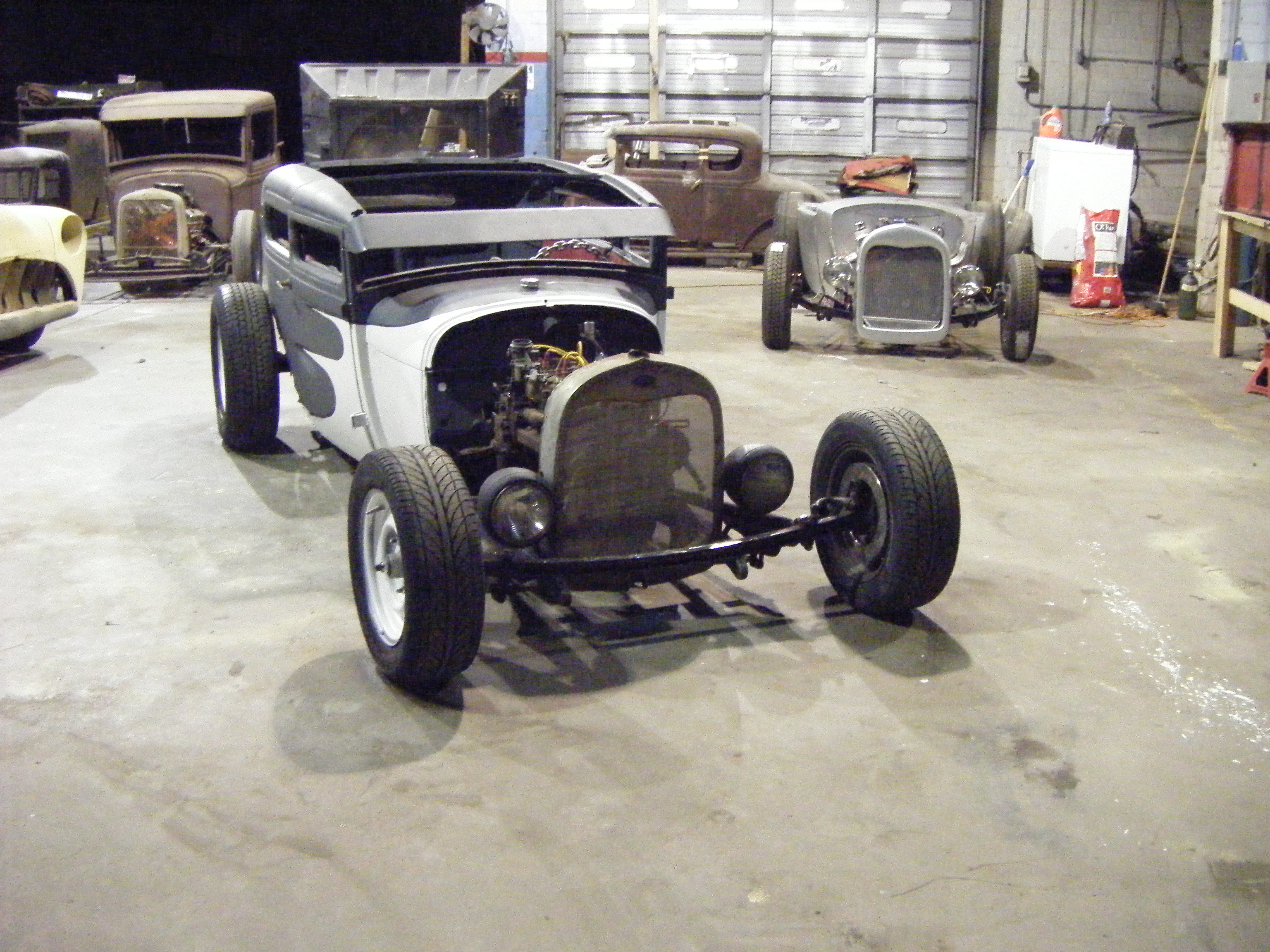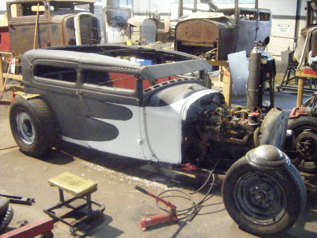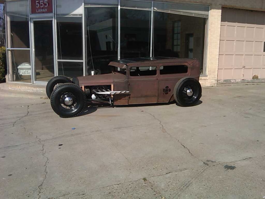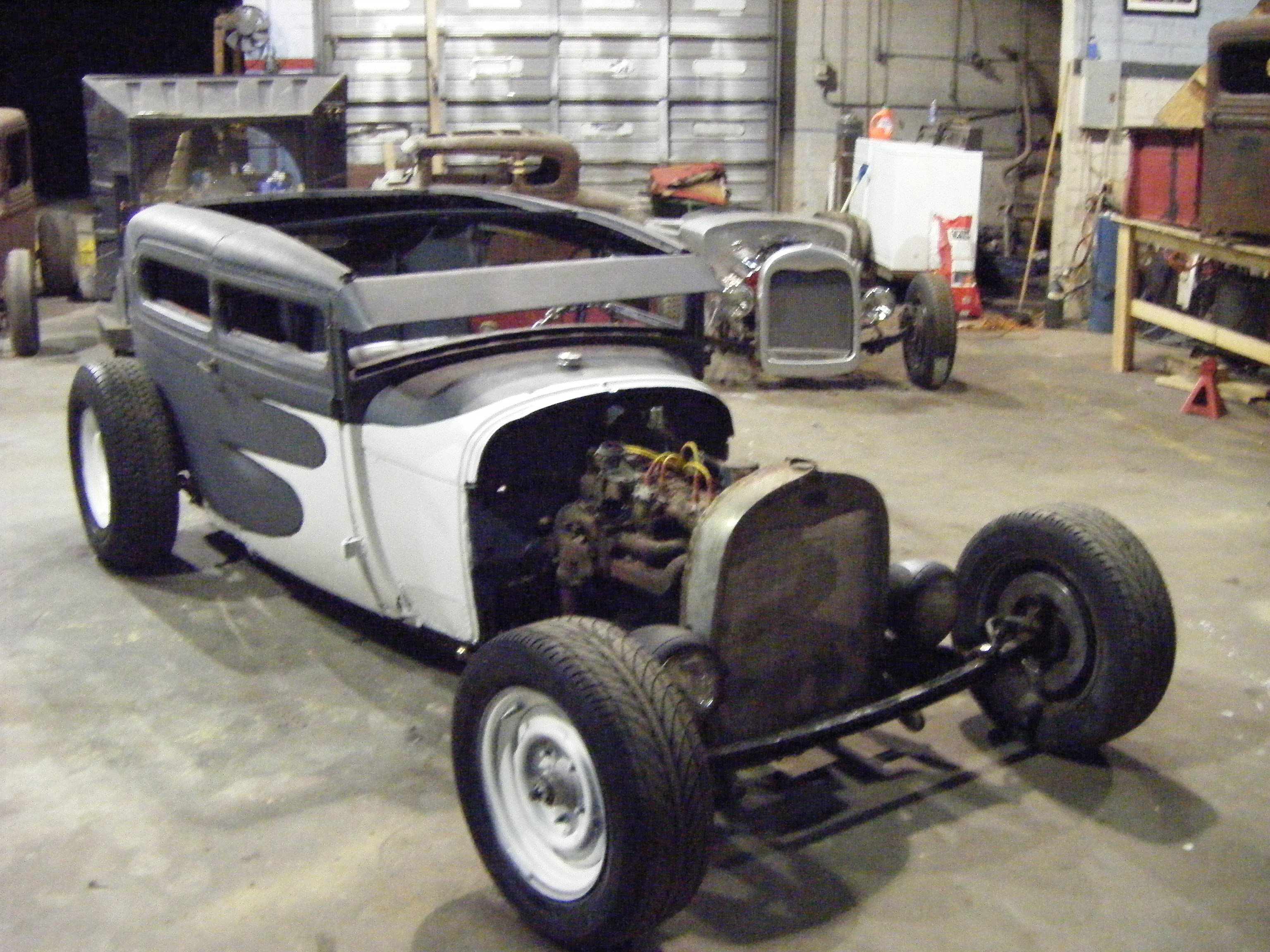 Ford Model A sedan built by Morbid Rodz that featured white scallops on a flat black finish. This car was shipped overseas and currently resides in Poland.