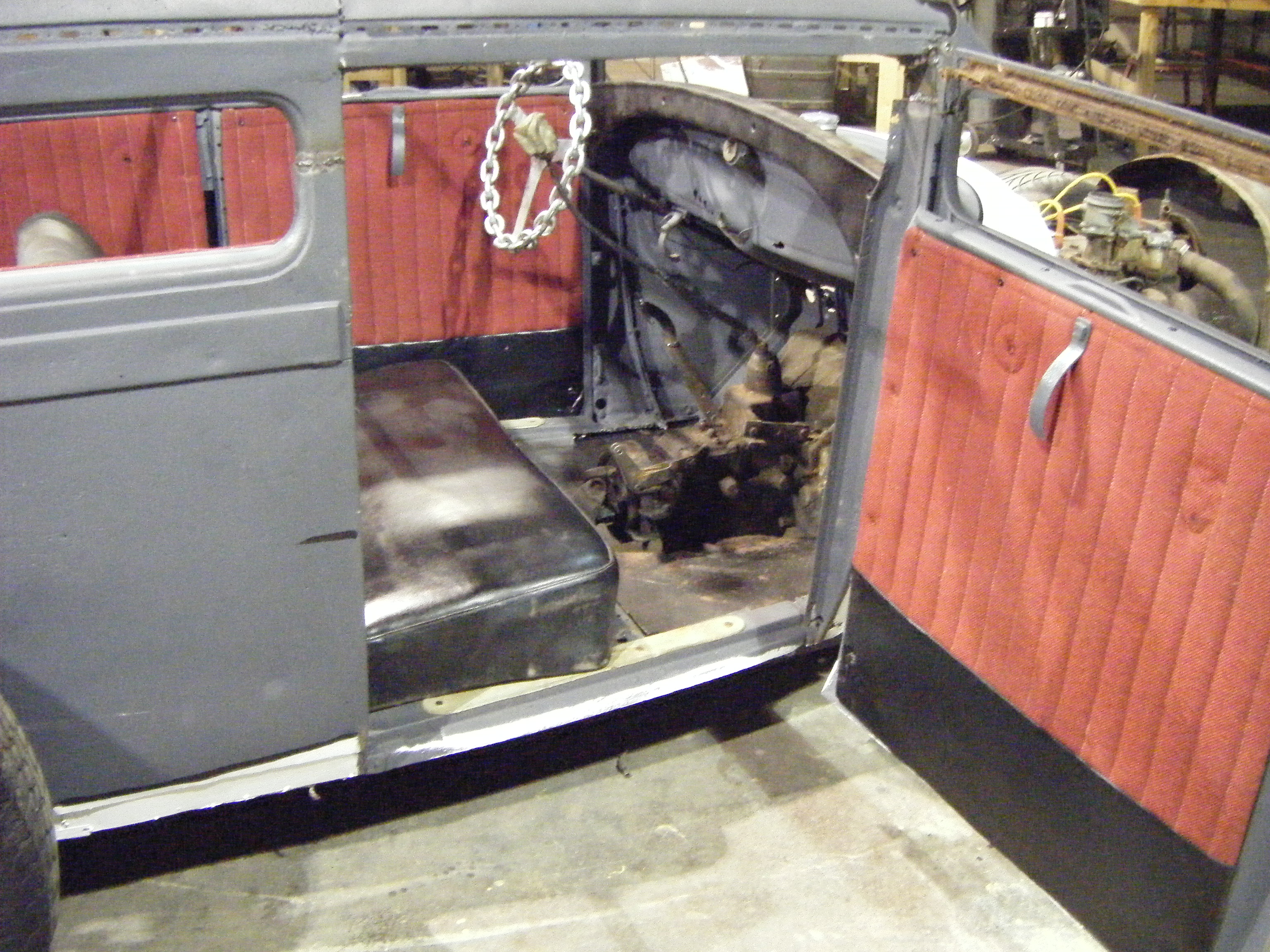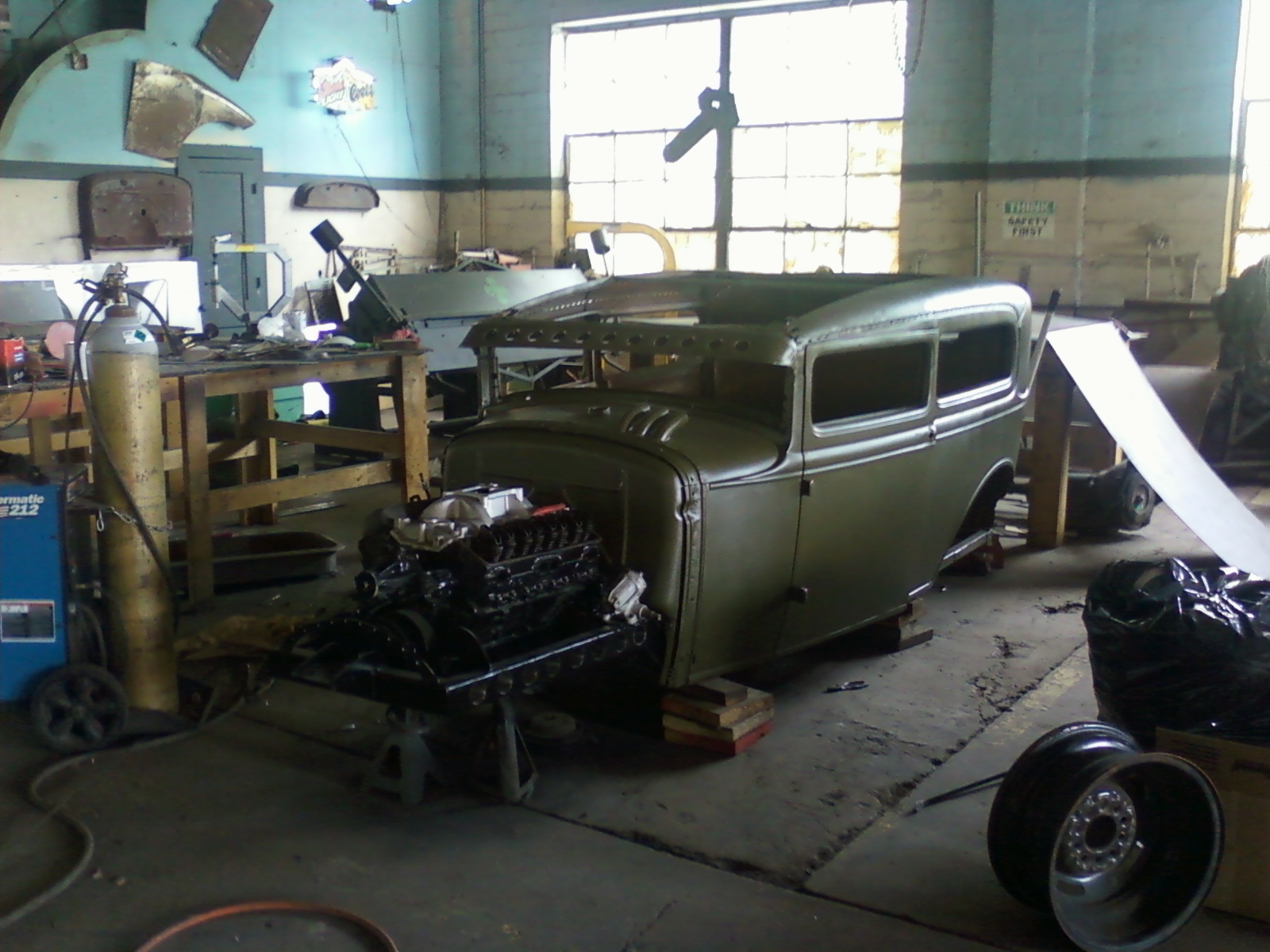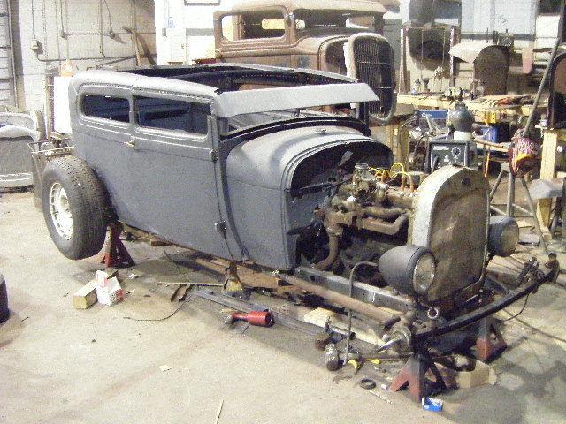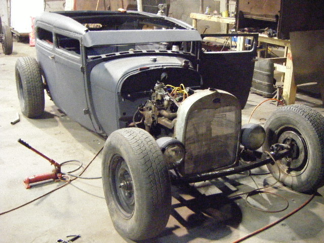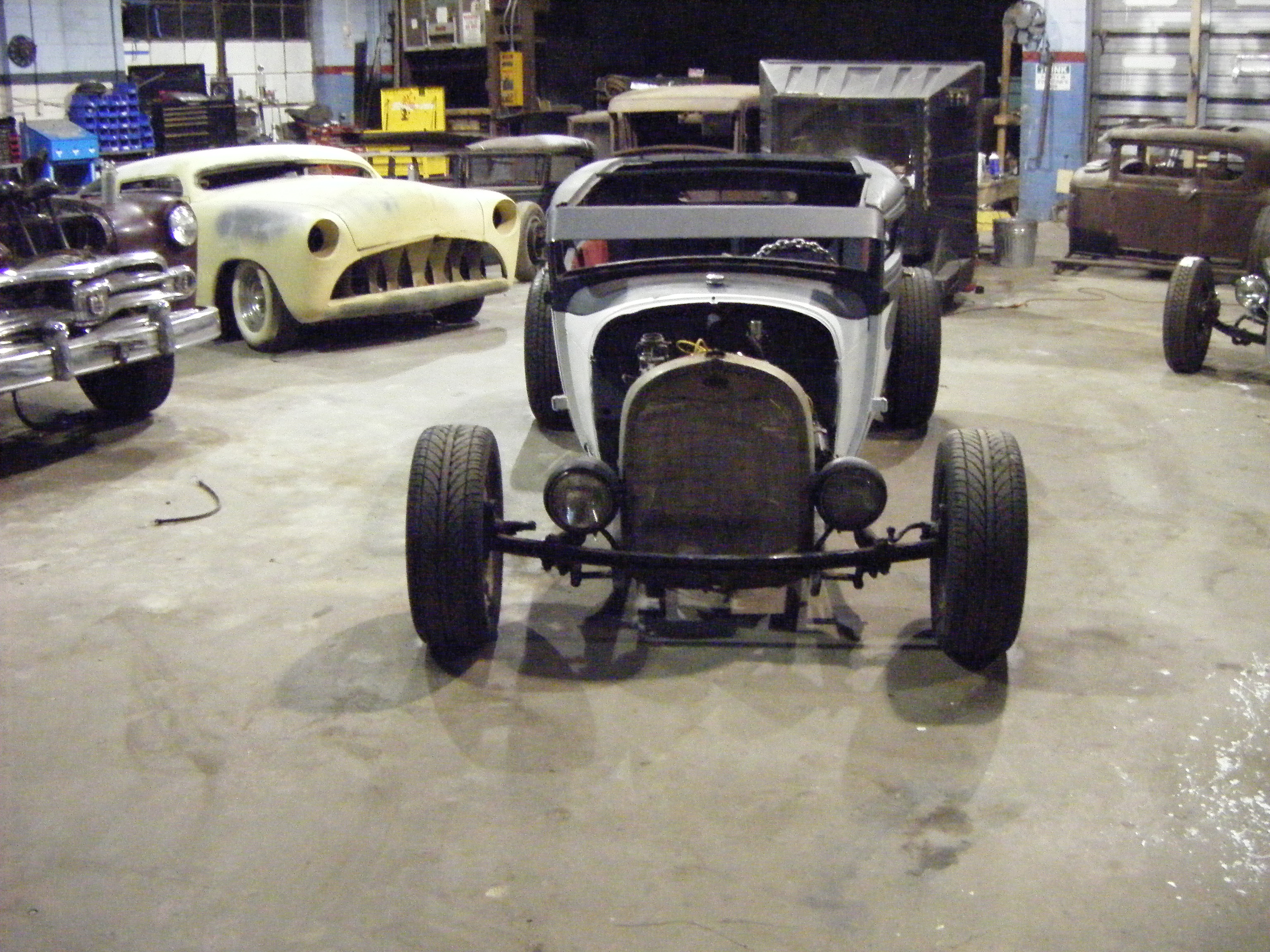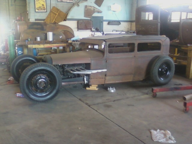 Ford Model A sedan built by Morbid Rodz that featured white scallops on a flat black finish. This car was shipped overseas and currently resides in Poland.