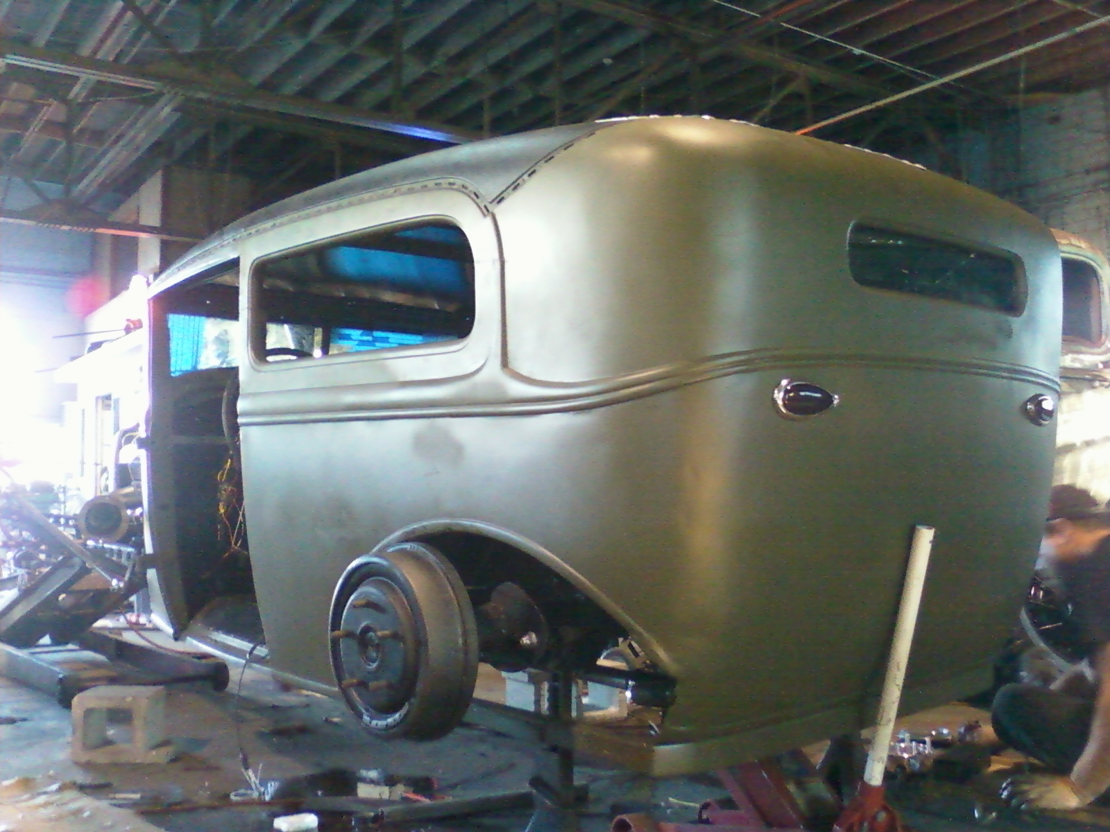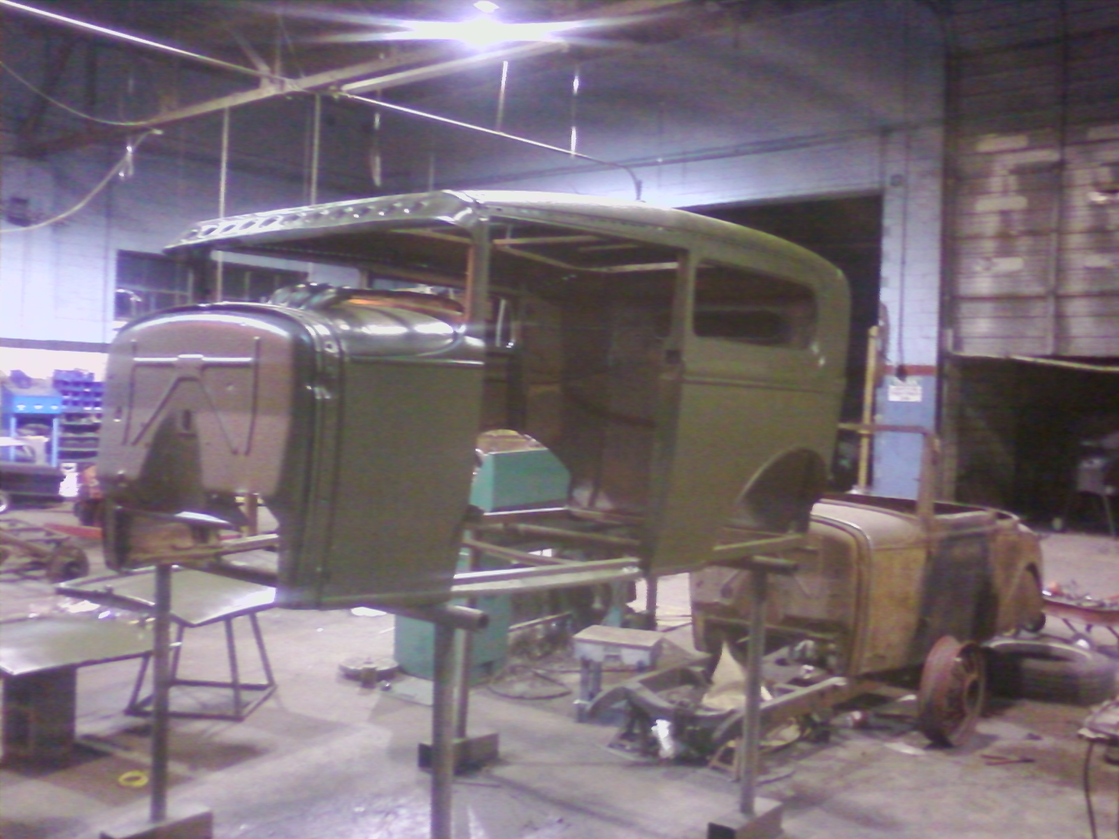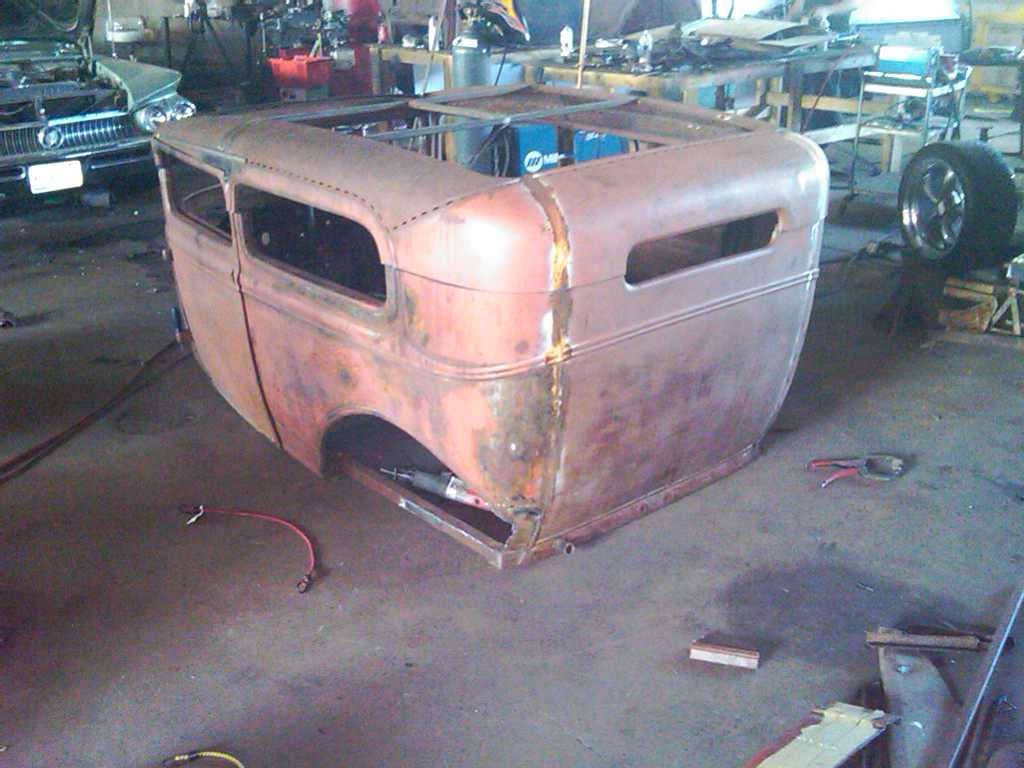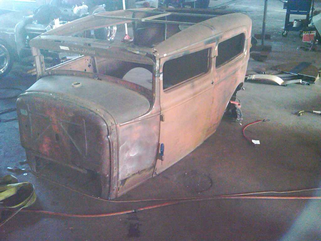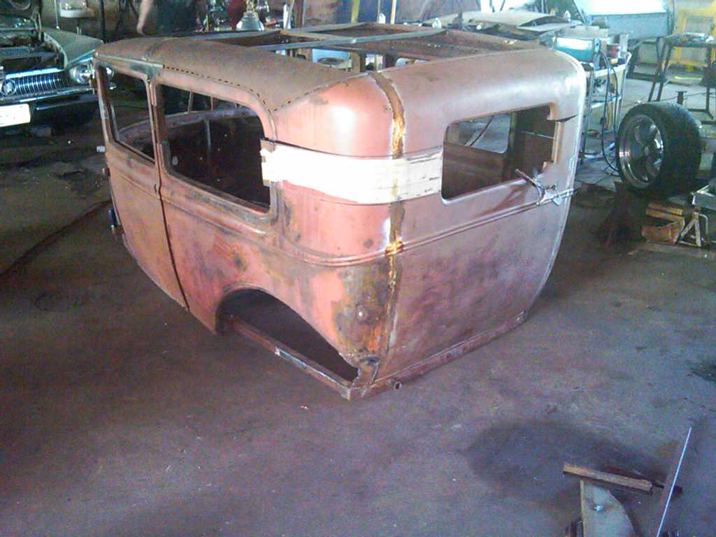 Here’s a sneak peak of a 1930 – 31 sedan being built!  It’s chopped 6 inches, channeled 5 inches, powered by a small block Chevy backed by an automatic.