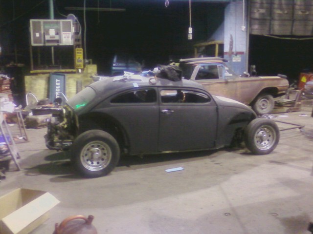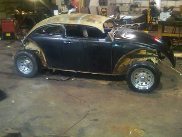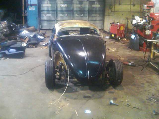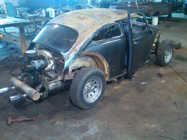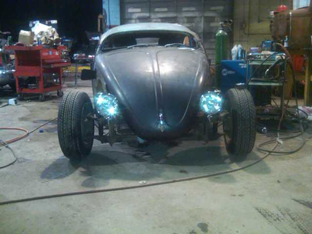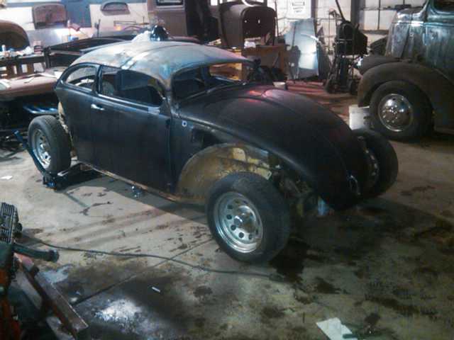 Here’s a collection of build pictures of the chopped and stretched VW Bug by Morbid Rodz. The roof features a heavy chop and the front axle was shifted forward 12 inches to stretch the wheel base.